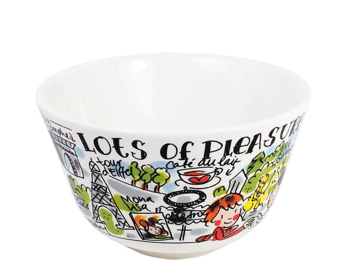 Parijs! Shopping, de Eiffeltoren en andere highlights uit deze mooie stad staan afgebeeld op deze vrolijke, kleurrijke Blond Amsterdam kom.