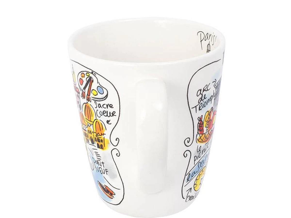 Parijs! Shopping, de Eiffeltoren en andere highlights uit deze mooie stad staan afgebeeld op deze vrolijke, kleurrijke Blond Amsterdam beker.