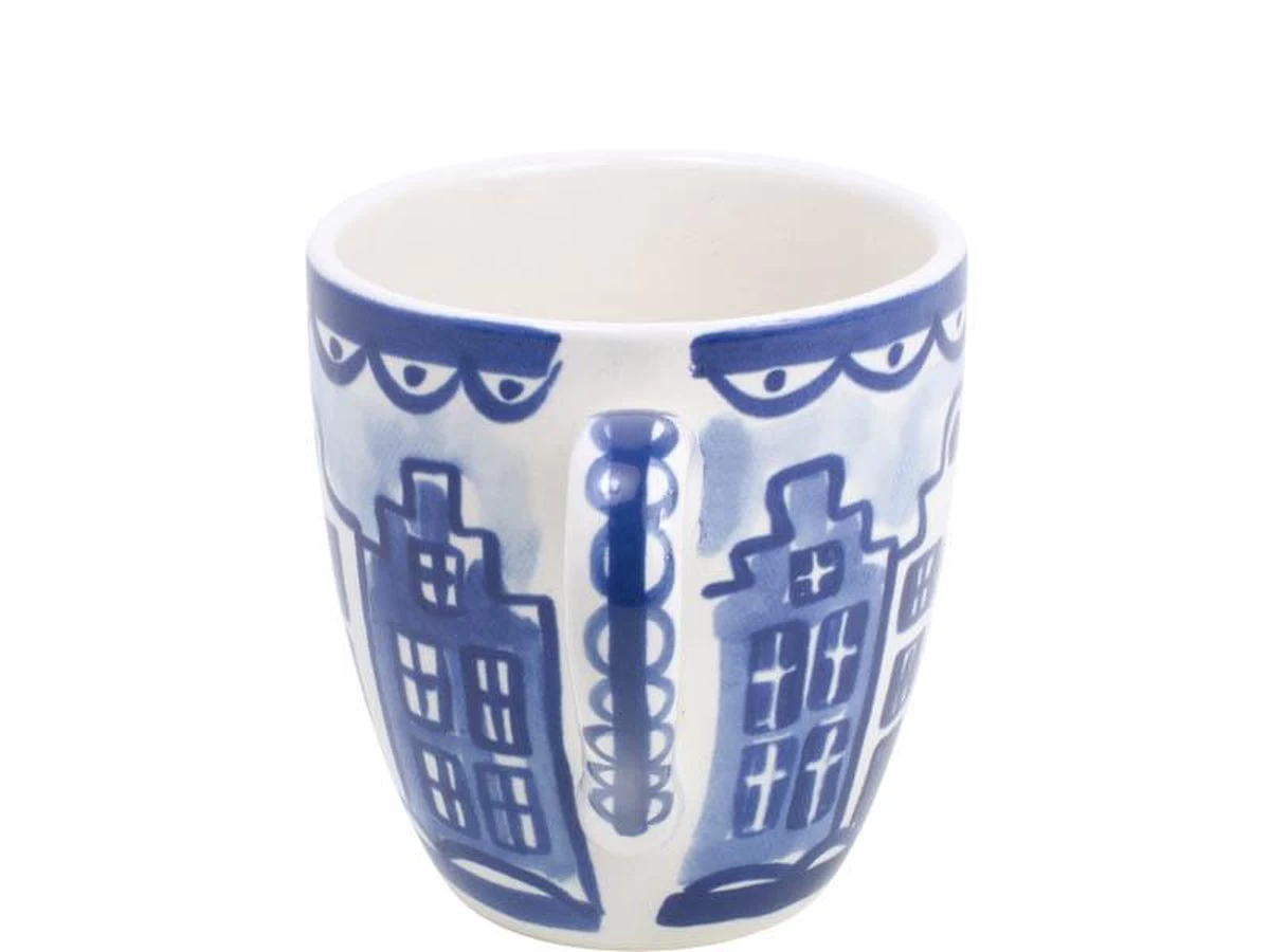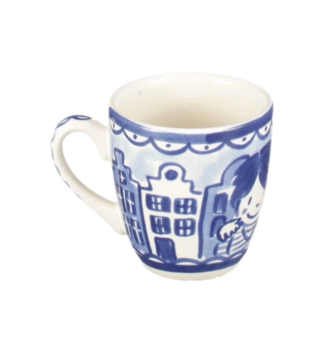 Deze mini-mok is gemaakt met een knipoog naar het oud-hollandse Delftsblauw servies. Dit vrolijke servies is gemaakt door de twee vriendinnen van het inmiddels bekende Blond Amsterdam. A bit of Blond every day!