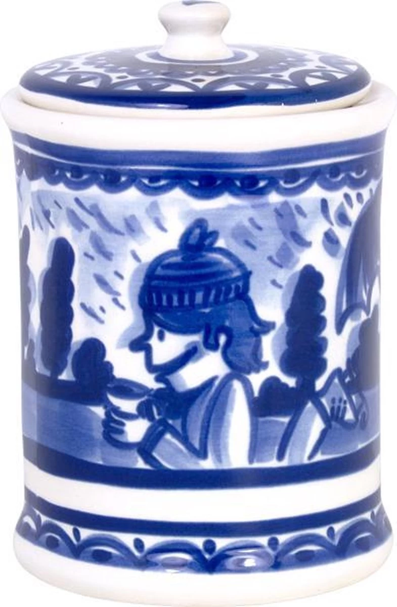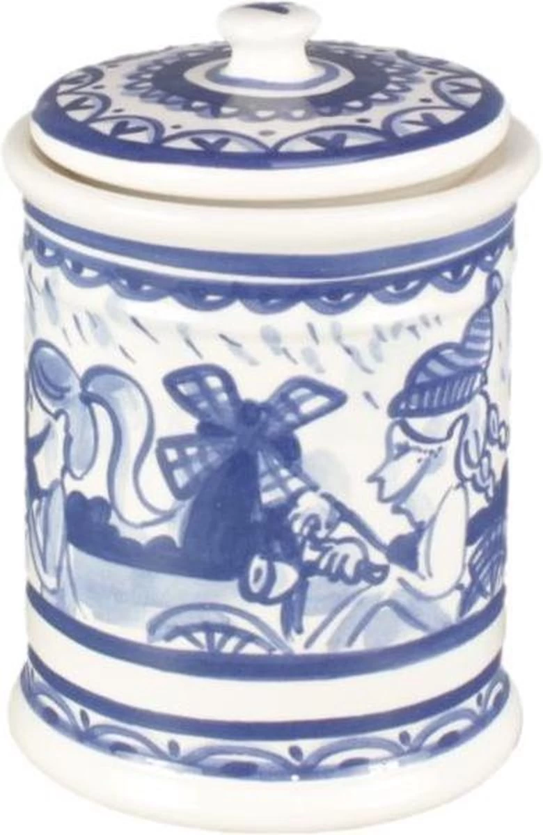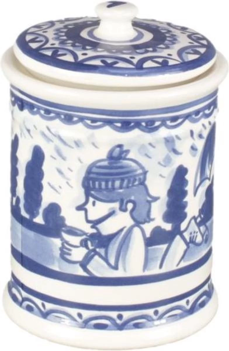 Deze voorraadpot is gemaakt met een knipoog naar het Oud-Hollandse Delfts blauw servies. Dit vrolijke servies is gemaakt door de twee vriendinnen van het inmiddels bekende Blond Amsterdam. A bit of Blond every day! Materiaal: aardewerk Hoogte: 17 cm Diameter: 13 cm Handbeschilderd Vaatwasmachinebestendig Geschikt voor oven en magnetron