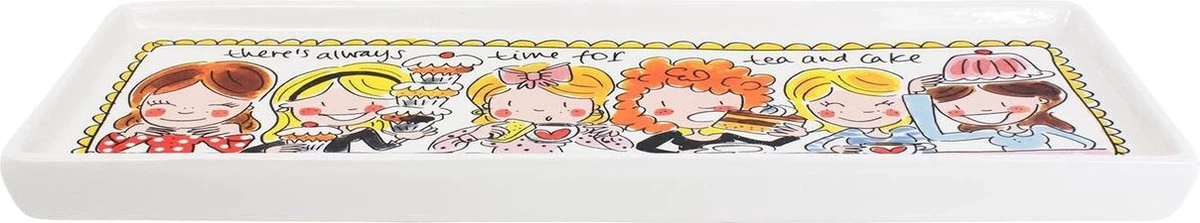 Serveer de lekkerste cakes of taartjes op deze nieuwe vrolijke en kleurrijke cakeschaal uit de Blond Amsterdam Even Bijkletsen lijn. De opvallende en kleurrijke illustraties kenmerken de ‘Even bijkletsen’ lijn van de twee vriendinnen uit Amsterdam: een servieslijn met een knipoog.