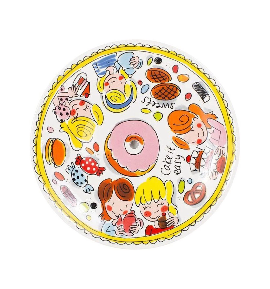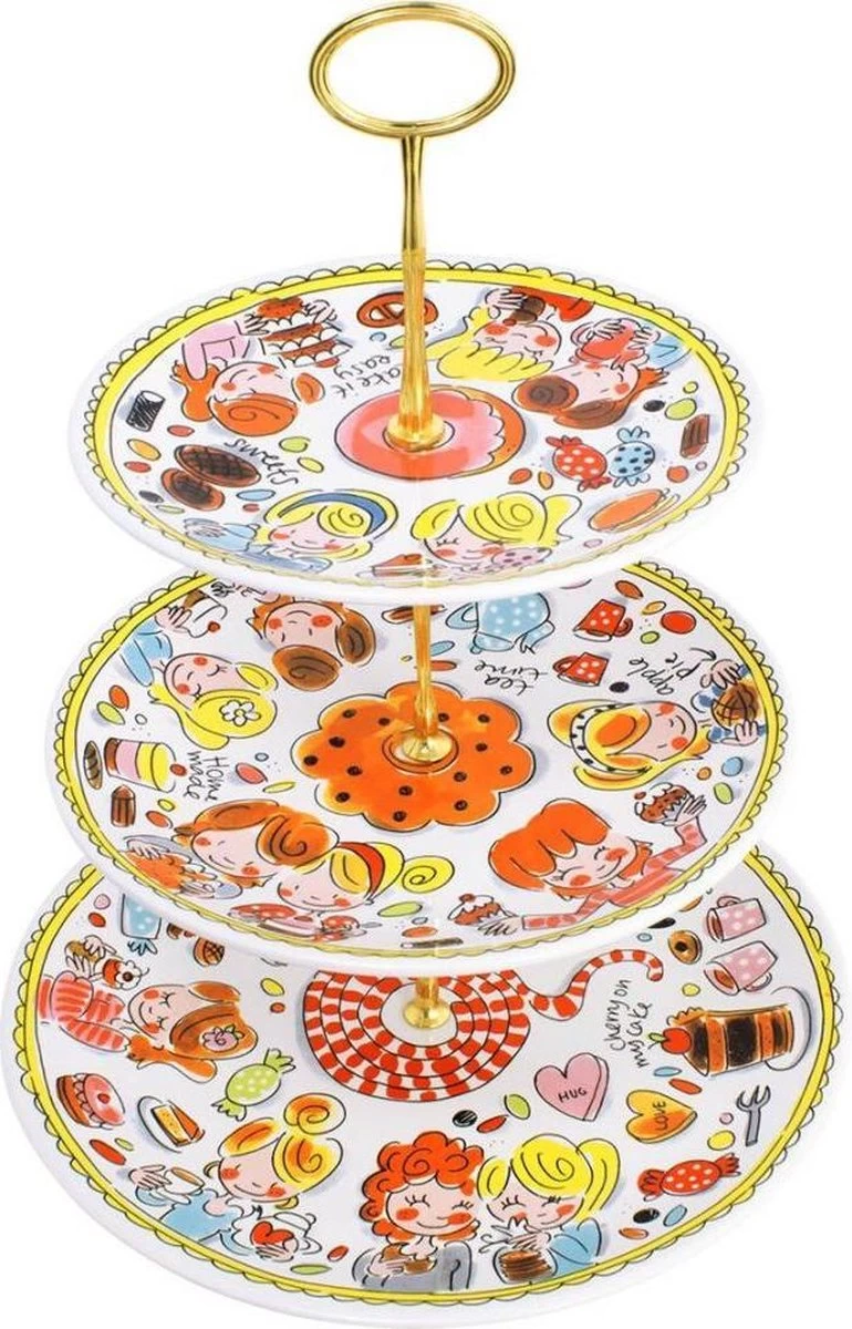 Serveer koekjes, cupcakes, chocolaatjes en andere lekkere hapjes op deze vrolijke etagère van Blond Amsterdam uit de Even Bijkletsen collectie. Van deze etagère krijg je toch spontaan zin in een uitgebreide high tea met je beste vriendinnen? Deze etagère is gemaakt van aardewerk en bestaat uit drie losse borden, die gewoon in de vaatwasser kunnen. De borden hebben een diameter van 18, 22 en 26