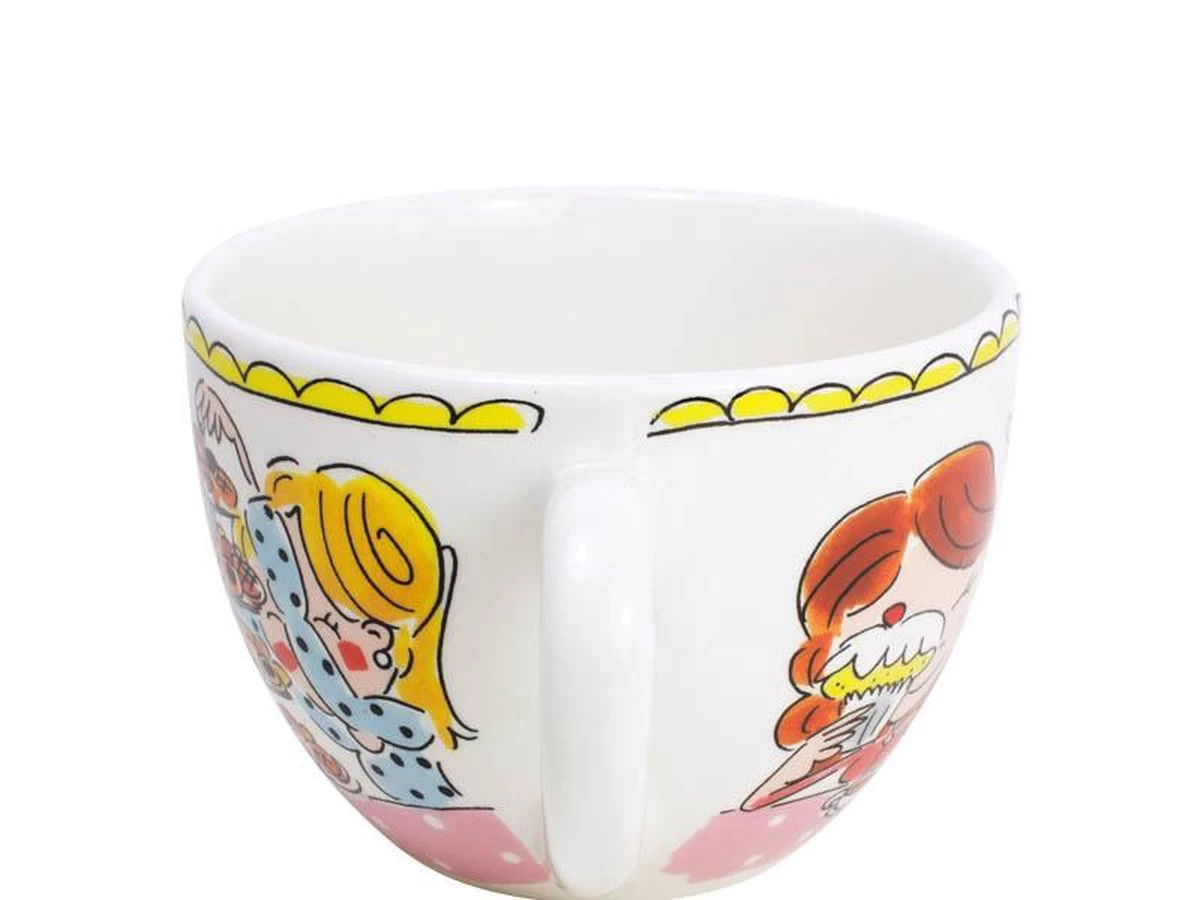 Een heerlijk brede kop waarbij je extra kunt genieten van jouw thee. De kop behoort tot de collectie Even Bijkletsen van Blond Amsterdam. Op de kop staan vriendinnen afgebeeld die veel plezier hebben tijdens een high tea.