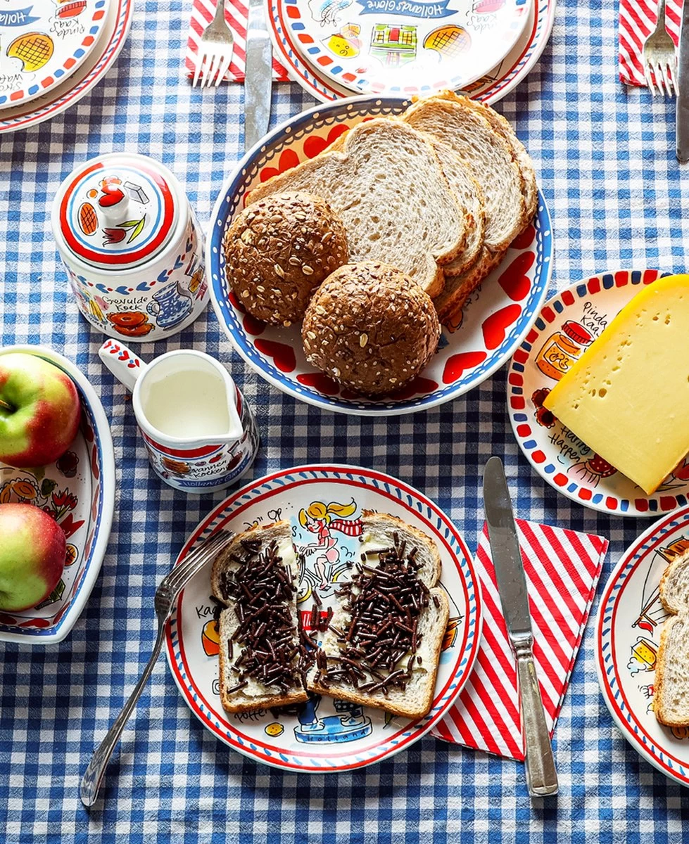 We love Holland! De nieuwe Hollands Glorie lijn van Blond Amsterdam is vormgegeven in frisse rood/wit/blauwe tinten en voorzien van typisch Hollandse illustraties. Op dit suikerpotje staan illustraties van het meisje met de parel en Hollandse aardbeien.