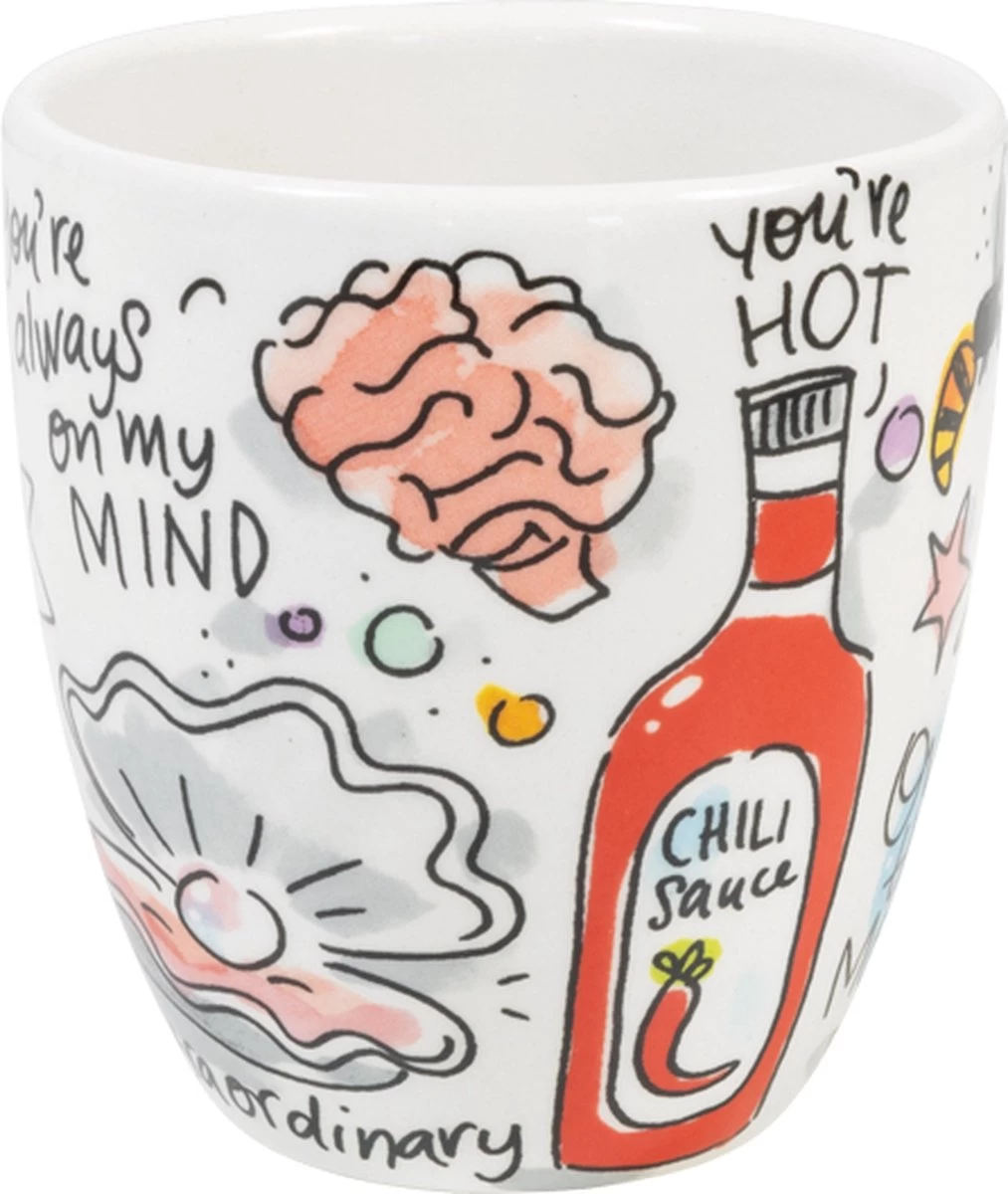 Liefde kun je 365 dagen per jaar vieren maar op 14 Februari nog net een beetje extra: Valentijnsdag. Een mooie gelegenheid om je (stille) liefde te laten weten dat jullie voor altijd bij elkaar horen. Door middel van een ontbijtje op bed, een lievelingsfoto in een lijst, of zijn/haar lieveling snacks in de hartjes schaal. In de nieuwe Valentijnscollectie van Blond Amsterdam vind je deze vrolijke minimok. De minimok heeft geen handvat en op de minimok staat een rood hart, met de tekst You & Me. Er omheen staan leuke tekeningen in Blond stijl met teksten ´Bee mine´ en ´you’re hot ´. Deze minimok kan je combineren met bijhorende beker, ontbijtbord of hartvormige schaal. Let love rule!